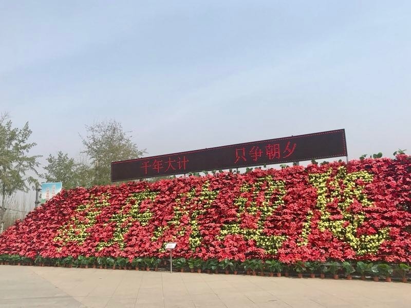 轉入容城就能看到「雄安歡迎您」的花壇 (黃燕明攝)