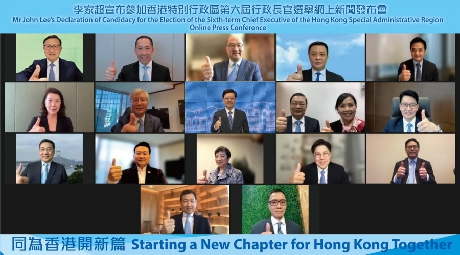 另外,在李家超宣布參選後,其競選團隊亦全部現身。當中,競選辦主任由全國人大常委譚耀宗擔任,副主任多達16名,涵蓋政商界代表及多名立法會議員,包括政制及內地事務局前局長譚志源、全國政協委員陳清霞、東亞銀行(00023)聯席行政總裁李民斌、信和集團(00083)副主席黃永光、資深傳媒人盧永雄、基本法委員會委員、資深大律師莫樹聯,以及立法會議員陳勇、黃元山、鄧飛、黃英豪、霍啟剛等。