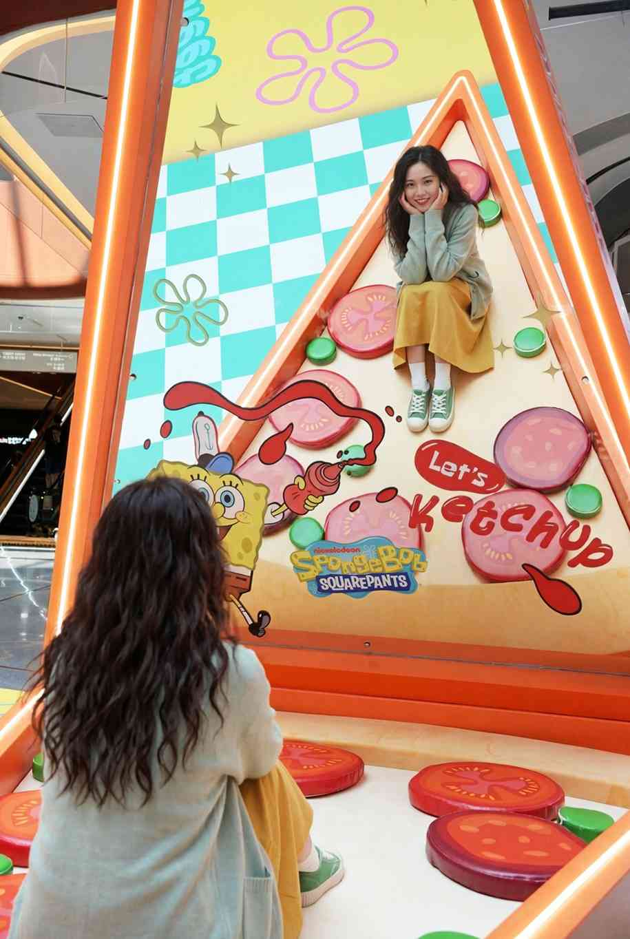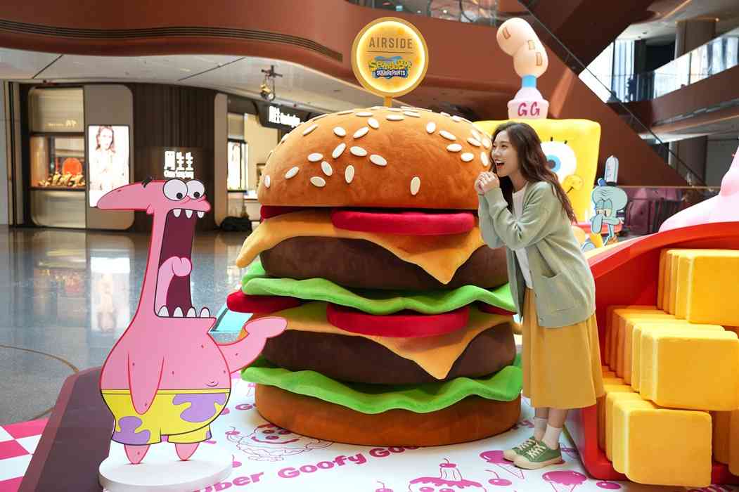 走进色彩缤纷的「比奇堡滋味派对」,瞬间潜入热闹欢乐的美食世界!两位来自比奇堡的明星居民 —— 海绵宝宝与派大星化身巨型吹气装置,坐镇AIRSIDE中庭,热情迎接大家。两位满脸期待看着眼前的巨型汉堡和雪糕新地,表情搞怪可爱。其中来自《海绵宝宝》系列的传奇甜点 ——「三层傻瓜蛋莓果圣代」更于现场梦幻重现,势成现场最甜蜜打卡焦点!快来与海绵宝宝和派大星一起放纵味蕾、释放童心,开启一场独一无二的海底美食冒险!