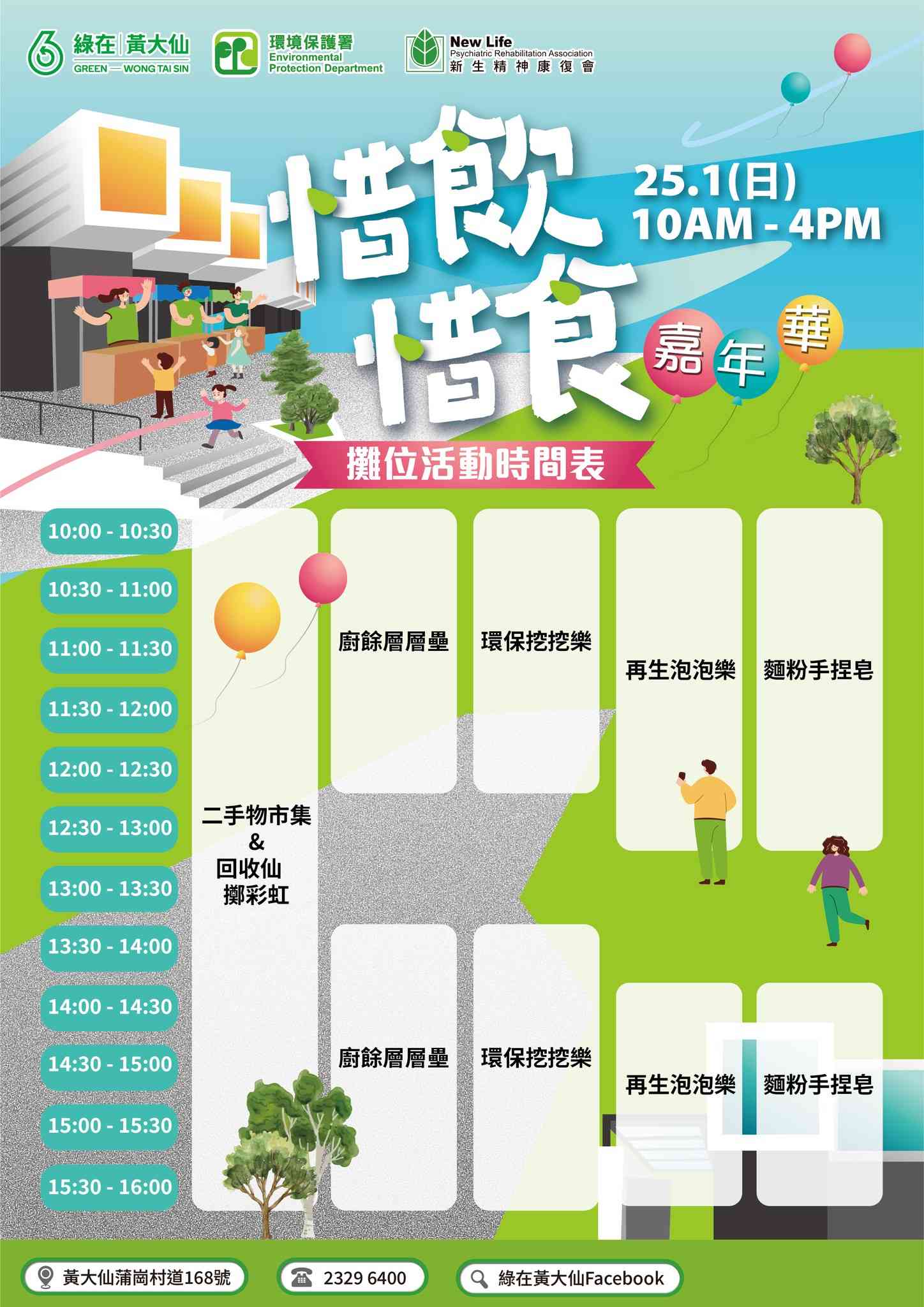 綠在黃大仙於1月25日將會舉行「惜飲惜食嘉年華」,記得約埋好友一齊嚟參與啦!詳情請留意嘉年華海報