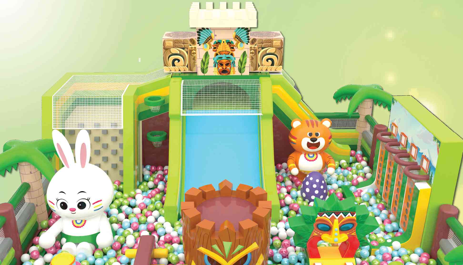 小登山探險隊員一同前往傳說中遙遠的復活島,尋找快樂能源,探索古文明島嶼深處隱藏著的「永恆歡樂古城」!闖越三大關卡,先穿過20米長障礙賽道「勇氣試煉場」、登上古城中9米高垂直「神聖大山」,再勇敢地沿滑梯一瀡而下,到達與無邊際、彩色的「波波海」!召喚勇氣與智慧的登山探險拍檔,共同衝破關卡考驗、登上峰頂,尋覓傳說中珍貴無比的寶藏!