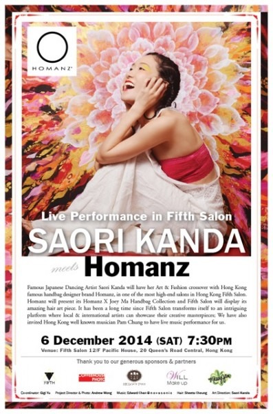 Saori是日本著名的舞蹈藝術家,她會一邊聽著音樂,一邊跳舞,一邊繪畫。她曾經跟多個國際時裝及美容品牌合作,包括Vivienne Tam及shu uemura等等。而今次更是她第一次來香港作現場的藝術表演!