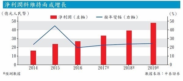 受內地醫藥需求上升帶動,恒瑞的淨利潤未來料仍會穩定上升。中泰證券預期,未來三年的淨利潤,將繼續保持約20%的年增長(見圖),今年將突破30億元,難怪獲外資密密吸貨。