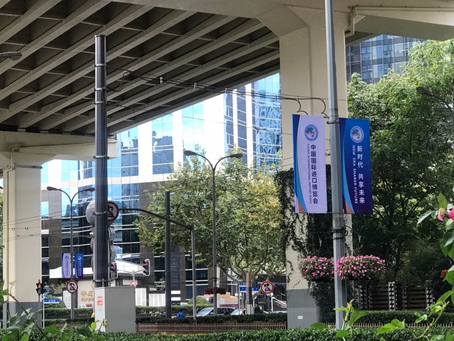 上海街頭已經掛起進博會的宣傳標語(林雯婕攝)