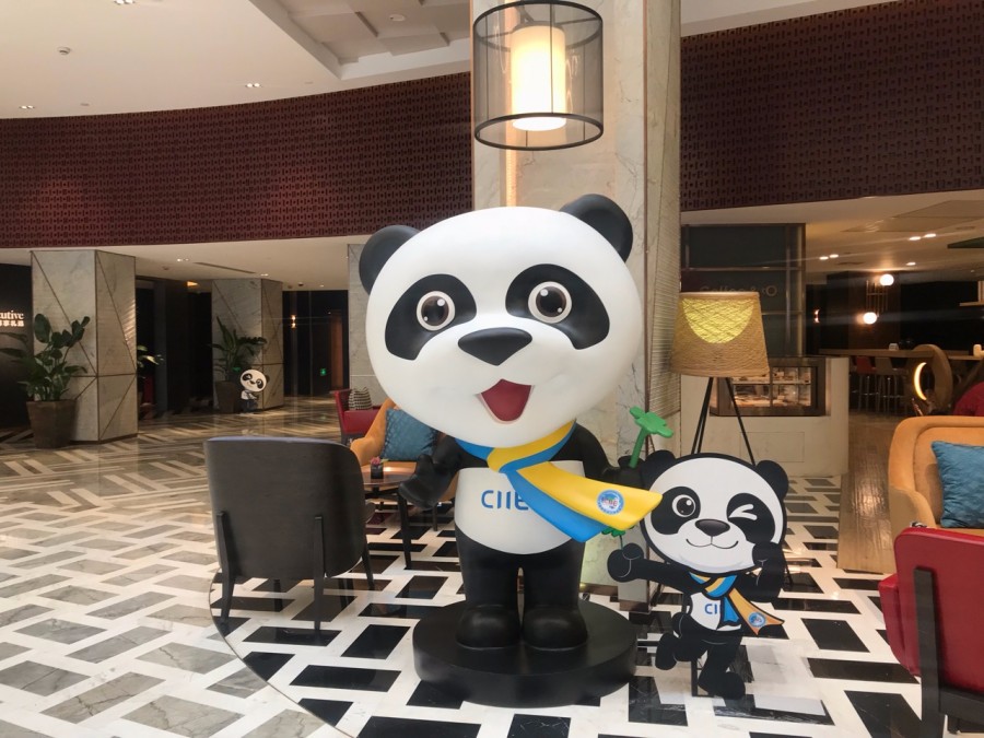 進博會的吉祥物「進寶」已在多間酒店、商場就位(林雯婕攝)