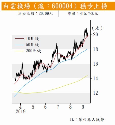 儘管如此,白雲機場今年以來的股價表現仍算可圈可點,由年初的10元至升至上周四(12日)收市的20.09元,累計有近一倍升幅,相對強弱指數(RSI)近日亦在70的超買水平徘徊,參考過去數月股價一旦跌穿10天平均線後都能快速收復繼續向上,建議可以在現價上車,跌穿50天平均線離場。