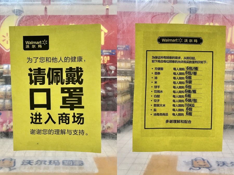 上海一間超市為確保疫情期間不出現搶購潮,實行了生活物資限購措施。在工廠復工後,這樣的限購措施也已經取消(林雯婕攝)