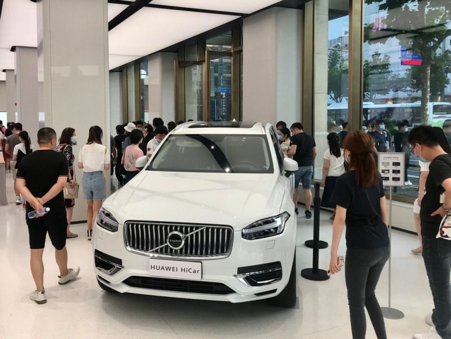 比如智慧汽車就是華為技術運用的場景之一。這輛車牌為「Huawei HiCar」的沃爾沃XC90 T8搭載了華為的智慧車載系統,可以和華為手機互聯互通,通過汽車控制屏顯示日程提醒、目的地導航、音樂播放、接聽來電,以及語音助手等功能。據銷售人員介紹,預計該車將於明年上市,頂配版售價約在80萬元人民幣左右。(林雯婕攝)