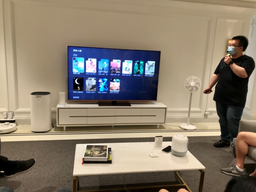 在二樓的生活場景體驗區,華為搭建了一個未來客廳,有華為智能電視、智能音箱、掃地機器人,另一邊還有搭載華為系統的跑步機,運動手表等,所有這些智慧設備都是圍繞華為「1+8+N」產業布局而打造的。其中,「1」是指手機;以手機為核心擴展到「8」個智慧設備,包括車機、音箱、耳機、手表/手環、平板、大屏、PC、AR/VR設備,再加上「N」就是泛IOT設備,以此打造全場景智慧生活戰略。(林雯婕攝)