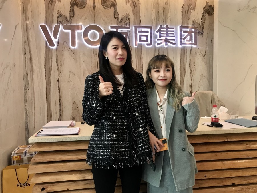 「蚊子會」CEO吳蚊米(左)與專職主播蘿莉媽(右)。蘿莉媽表示,當初選擇做主播這份工作主要是覺得這個職業很新穎。除了「雙11」大促外,工作時間較有彈性,與粉絲互動也是非常有趣的過程。(林雯婕攝)