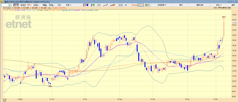美國總統選舉結果基本上塵埃落定,民主黨候選人拜登取得逾270選舉人票並已宣布勝選,多國元首已紛紛祝賀拜登。惟現任總統特朗普聲稱不接受選舉結果,揚言提出訴訟推翻部分州份的選票。話雖如此,傳統炒股智慧是「Buy the rumour,sell the fact」(買在謠言起,沽在事實出),但不少「拜登概念股」今日一於少理,繼續落鑊炒,當中今日焦點為舜宇(02382),半日炒高逾一成二創逾兩年高。「拜登概念股」短期已遭炒上,究竟短期該如何部署?