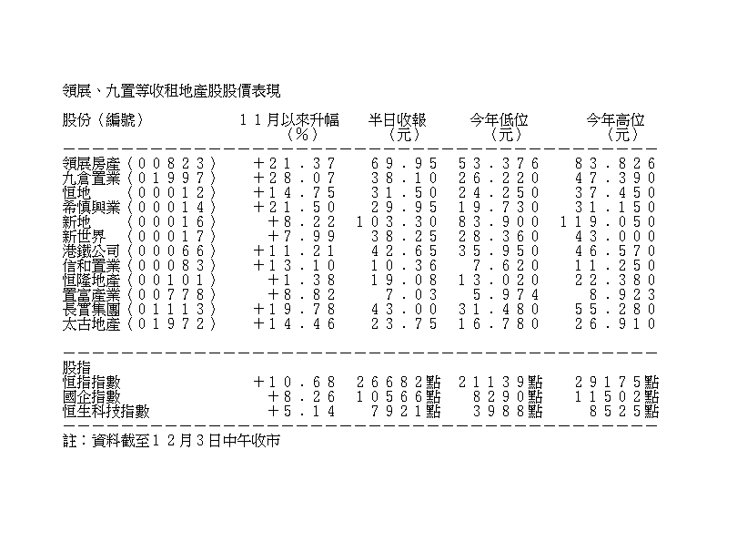 雖然全球新冠肺炎確診個案持續增加,但各大藥廠研發疫苗有突破發展,市場憧憬疫情消退,經濟回復,連月受累疫情的本地收租地產股,今日隨摩根士丹利發表報告唱好而大幅回升,跑贏大市。