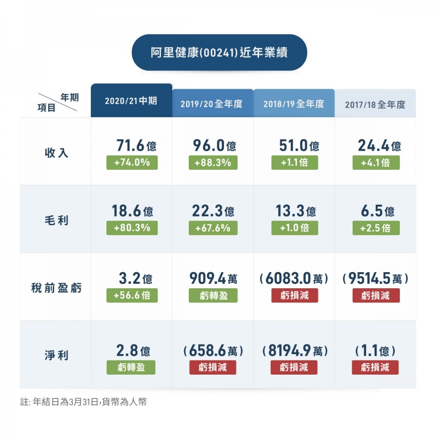 阿里健康為在線醫療健康平台公司,從事醫藥自營業務、醫藥電商平台業務、醫療健康服務業務及追溯及數字醫療業務。該公司本年度中期收入大增,帶動業績正式轉虧為盈,並非僅僅錄得經調整純利。