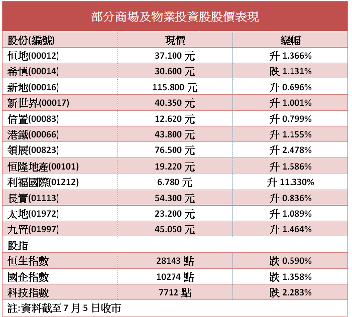 大華繼顯發表研究報告指,本港5月份零售銷售按年增長10.5%,較預期的6.9%為高,預計政府的消費券計劃將在短期內促進零售市道。同時,該行留意到,本港的疫苗接種率一直在顯著增加,有望令社交距離限制及出入境限制在未來6個月內放寬。由於預期零售租金下半年將會反彈,該行上調房地產信託基金板塊評級至「增持」,首選為領展和九龍倉置業,評級均為買入,目標價分別是85.1元及52.37元。