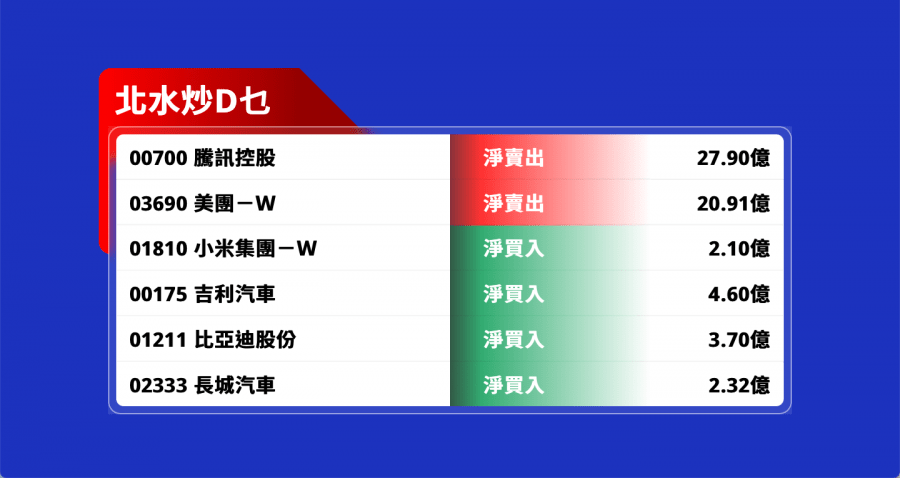 不過,被視為「聰明錢」的北水早已偷步入市,上日轉方向,淨買入小米2.1億元。值得留意的是,小米一直是TMX中,北水淨賣出最少的股份。撇取上日,北水僅淨賣出小米14.78億;對比騰訊及美團,分別被狠沽141.8億元及43.83元。當然,小米一直被認為被監管的風險最少。