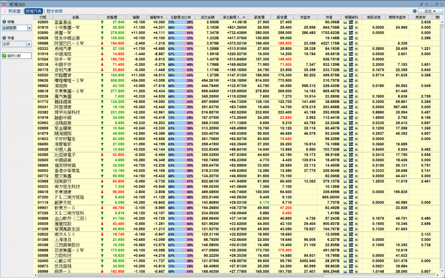 小米半日錄逾9億元資金淨主動買入,僅次於盈富基金;阿里巴巴股價雖逆市跌,惟錄近4億元掃貨。(《經濟通HV2報價系統》截圖)