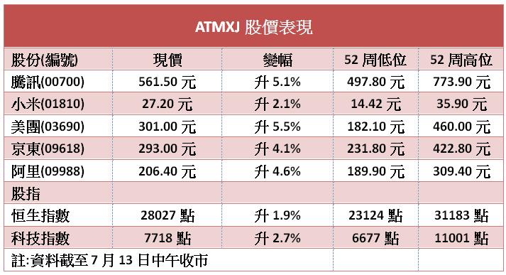 受「反壟斷」浪潮影響,騰訊股價亦由2月份歷史高位773.9元跌至上周五(9日)創十個月低位509.5元;而美團更由今年2月高位460元,三個月間、5月份低見240元。騰訊現價比高位仍低出逾27%,美團及阿里更低出35%及33%,且看內地官方可有更多利好股價的消息公布。