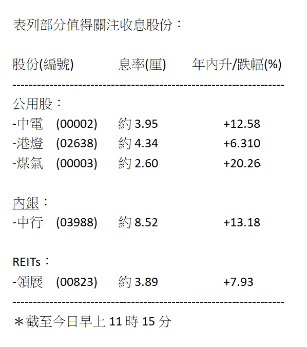 高息兼穩升股唔怕賺息蝕價 資金少可購港燈 中行