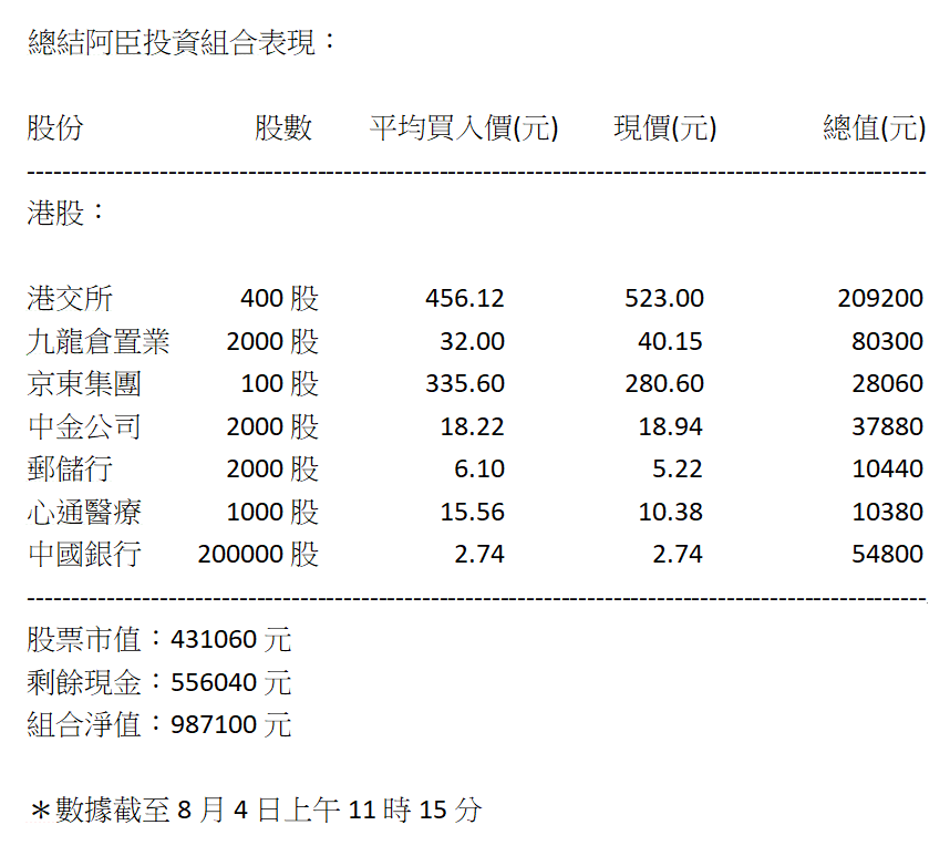 而為咗令缸友跟得貼啲倉位變動,如果阿臣有郁下個倉,會喺《小傳日記》專欄同大家交代聲!想知道古臣百萬倉有咩變動嘅話就記得睇實喇!