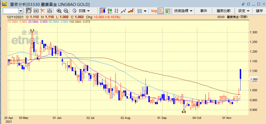 靈寶黃金今日收市升8.16%報1.06港元,其他金礦股亦普遍上升,紫金(02899)升0.19%收報10.8港元,招金(01818)升0.44%報6.84港元,中國黃金(02099)漲3.99%報24.75港元,而SPDR金ETF(02840)則無升跌收報1351港元。