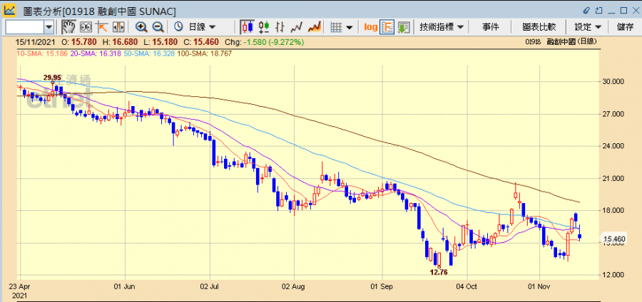 至於融創能否企穩配股價之上,溫傑指不重要,反正沒持貨的不會買,有貨者則會趁反彈搵位沽,在大部分內房壓力未解除下集資賣產是必然的,而融創在本月9日低見13.46元,彈至上周高位17.82元,升了逾4元近兩成,短線難免有回吐,加上配股有攤薄效應,除非見配股後流動性問題解決股價才有轉機,但市場看來不是這樣看,故縱有反彈也不值博。