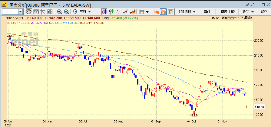 績後阿里雖獲摩通維持增持評級,但目標價大降一成八,由250元降至205元。大和亦將阿里目標價由220元降至188元,維持買入評級;瑞信則將目標價由186元降至176元,維持跑贏大市評級。