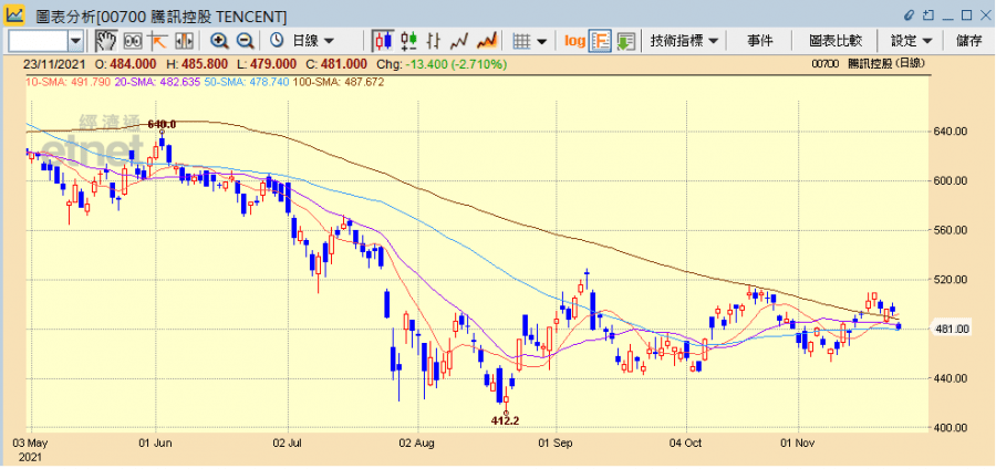 除內地有再度加強互聯網監管跡象外,近兩周眾科網巨頭陸續公布業績,在監管陰霾下,其中百度、嗶哩嗶哩(09626)及阿里表現都令人失望,今周快手(01024)、小米(01810)及美團(03690)將公布業績,料亦不會好到哪裏,除騰訊和阿里外,其他科網巨頭今日股價亦普遍向下,騰訊昨(22日)北水淨流出8.3億元排第二,今日半日收市則跌2.71%報481元,成交50.49億元。阿里業績欠佳,連日被多間大行調低目標價,今日半日再跌3.06%報132.9元,成交30.53億元,連跌五日,累跌19.55%。另百度跌2.23%報144.8元,嗶哩嗶哩跌3.01%報547元,美團跌2.99%報265.8元,快手跌1.12%報92.6元,小米無起跌報20.9元,京東跌1.28%報354.6元。