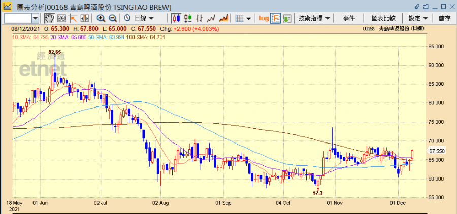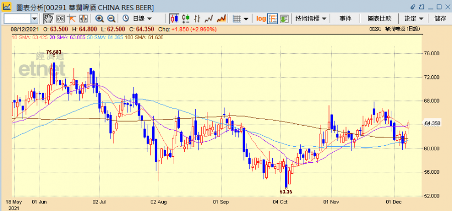 不過,投資者也應留意第四季度為啤酒淡季,短期除了提價消息以及業績公告外,相信整體催化劑不多,但仍可以待稍微回調後買入作中長線部署。潤啤今日收市升2.96%收報64.35元,青啤升4%收報67.55元,百威亞太則無升跌,報20.05元。