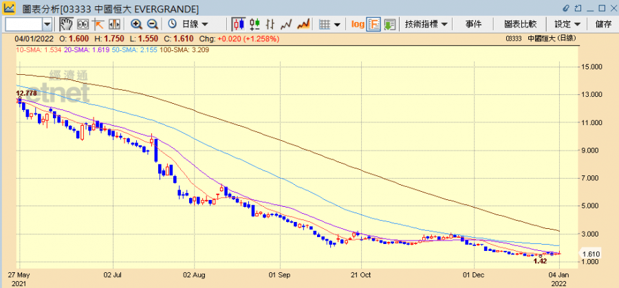 另外,恒大公布,2021年12月30日公司收到儋州市綜合行政執法局下發的海花島39棟建築《行政處罰(限期拆除)決定書》。該決定書僅針對位於2號島的2-14-1地塊39棟樓,不涉及海花島其他地塊,即不涉及6萬多戶已收樓業主及約630戶未收樓業主的地皮和樓宇。公司將按照決定書的指引積極溝通、妥善處理。另去年全年集團物業實現合約銷售金額4430.2億元,按年跌38.75%,僅達全年目標的59%。集團將繼續積極與債權人保持溝通,努力化解風險,維護各方合法權益。