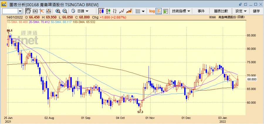 青啤今日升2.69%收報68.8港元,連升3日,累計升幅5.52%,成交3.91億港元。潤啤則升0.09%收報58.15港元,惟百威亞太跌0.5%報20.1港元。