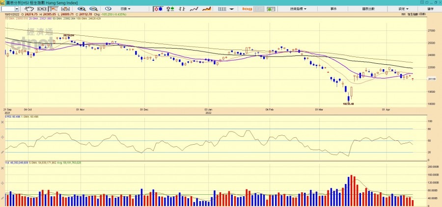 中概股個別發展;滴滴出行(DIDI)公布末季財報顯示上季營按年減少近13%,並宣布計劃於 5 月23日召開臨時股東會以表決從美股退市,股價大瀉18.29%收報每股2.01美元。另外阿里(BABA)跌0.82%報每股94.71美元;京東(JD)升1.66%報每股57.50美元;網易(NTES)跌1.66%報每股93.48美元;拼多多(PDD)微跌0.05%報每股40.01美元。