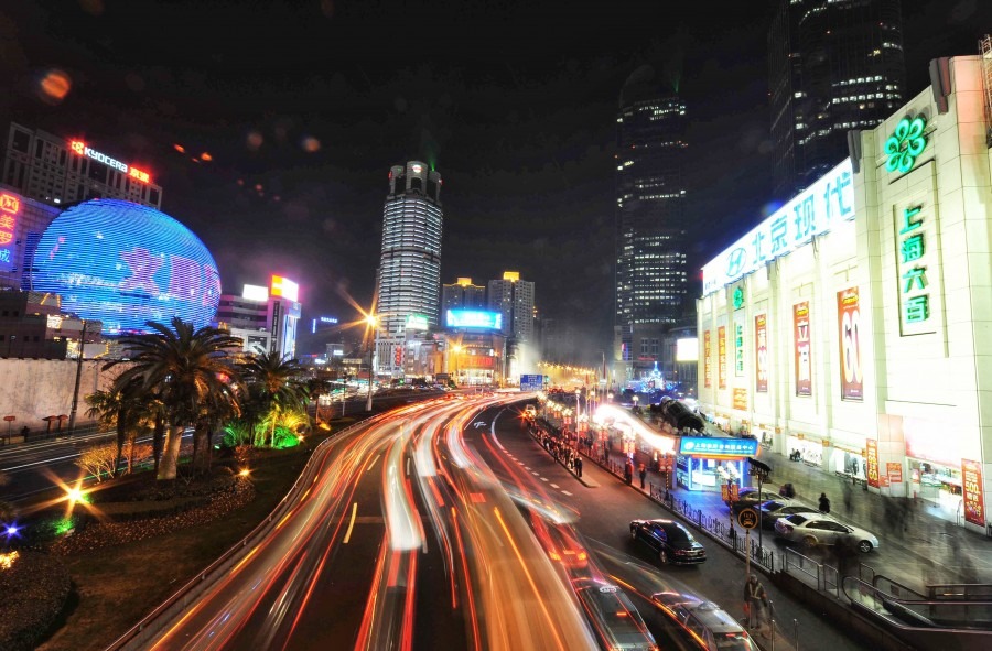 央行和財政部面對貿易戰高壓,須齊心協力放水救火。圖為上海徐家匯 (CNS資料圖片)