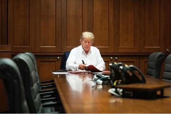 白宮發布特朗普周六在醫療中心辦公的相片,但媒體發現跟另一張拍攝於不同房間的「工作相」間隔時間僅10分鐘。
