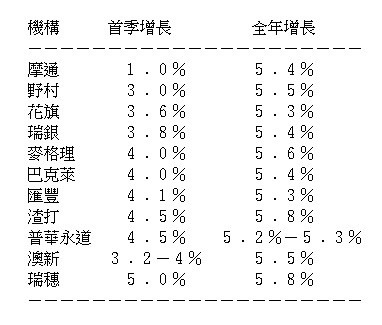 麥格理、瑞穗同預期全年GDP增5.6%;澳新、穆迪、領航(Vanguard)則暫維持增長預期為5.8%。此外,基本預測為5.5%的高盛警告,若疫情嚴重持續至第二季,則全年GDP增速或降至5%或更低。