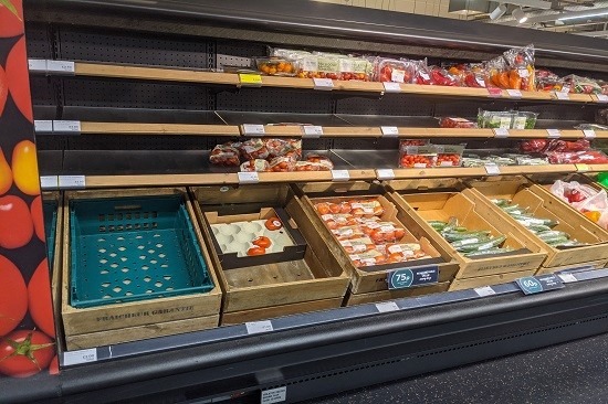 貨運阻滯嚴重影響供應鏈,在巴黎的Marks & Spencer店鋪,貨架光禿禿。