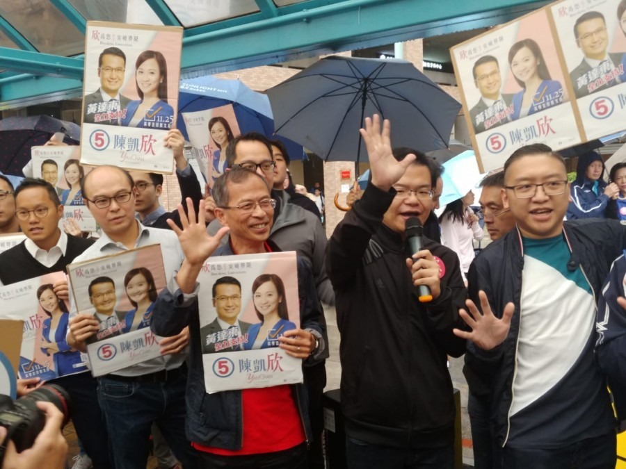人大常委譚耀宗、立法會前主席曾鈺成、立法會議員李慧琼、蔣麗雲、麥美娟、鄭泳舜等人,均有現身為陳凱欣拉票,陳凱欣的前上司食物及衞生局前局長高永文亦有現身為她站台。其餘4名候選人分別是伍迪希、曾麗文、馮檢基及李卓人。