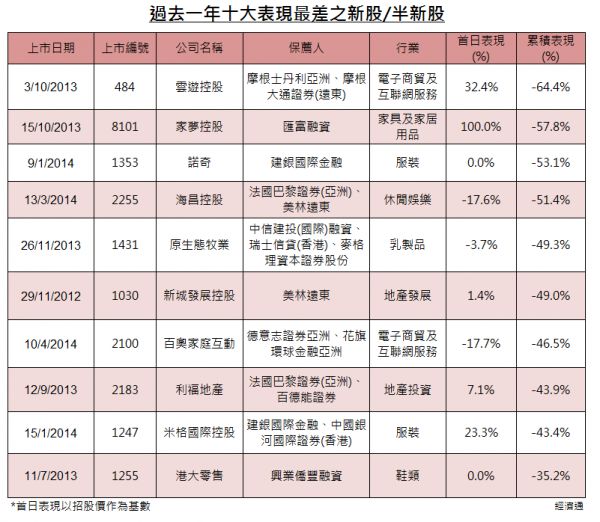 表現最差新股 保薦人亦不乏名牌
