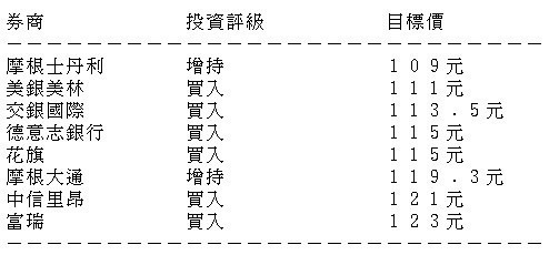 中信里昂於上月19日發出研究報告,予長和的目標價為119元,其後在31日再發表報告表明上調目標價至121元,反映近日長建的收購活動。