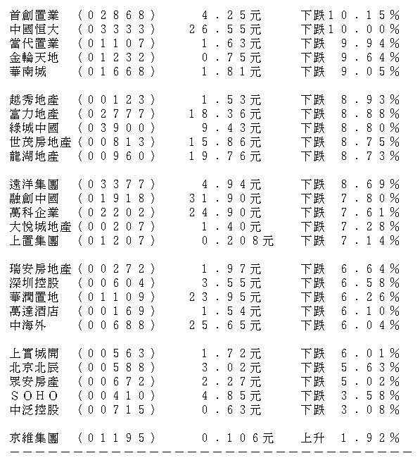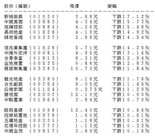 【加碼調控】內房捱沽奧園跌幅曾擴至17% 中信證券指限制政策未完