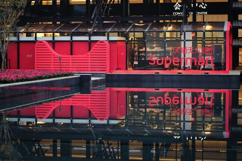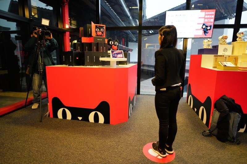阿里巴巴的天貓超市體驗店今年亮相世界互聯網大會。超市面積約150平方米,顧客手機掃碼進入時會自動記錄面部數據,拿著商品離開時,便可觸發購物通道識別設備,即時進行核算、支付 (駐滬記者王嘉寧攝)