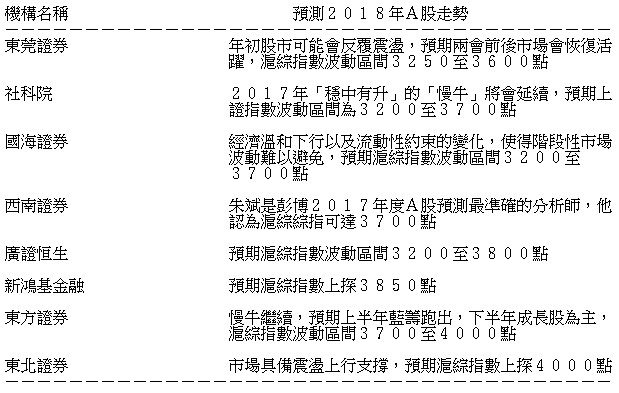 表列機構對2018年A股表現預測如下: