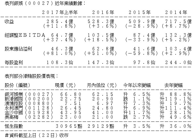 瑞信早前報告表示,銀娛(00027)中場業務增長潛力被市場忽視 (資料圖片)