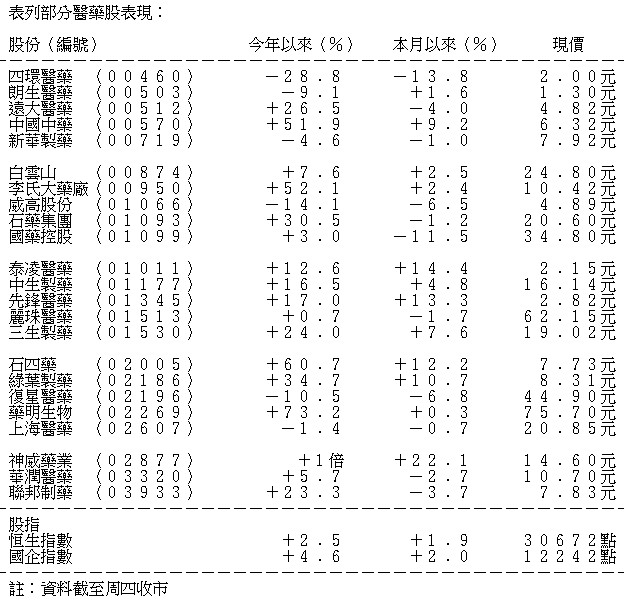 醫藥板塊在過去3月份錄得明顯的增長,主要由於行業的業務增長速度亮麗,加上中國藥企主要面對的市場仍為國內,未有受中美貿易戰憂慮拖低。