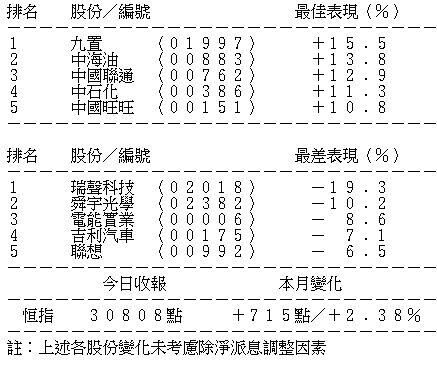 表列4月恒指表現最佳及最差成分股: