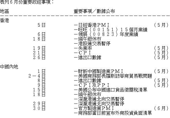 港股在整個5月份受外圍消息濃罩,中美貿易談判進程,美朝峰會變數,令大市受壓。月中雖然有石油股跟隨油價飛漲,加上港交所(00388)及騰訊(00700)季績理想,不過仍未有太大推動力。月底環球金融市場更受意大利政局拖累,港股一度再次失守三萬點大關。