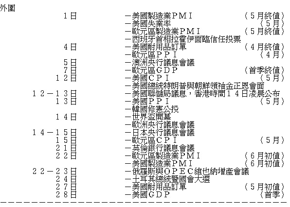 表列6月份重要政經事項: