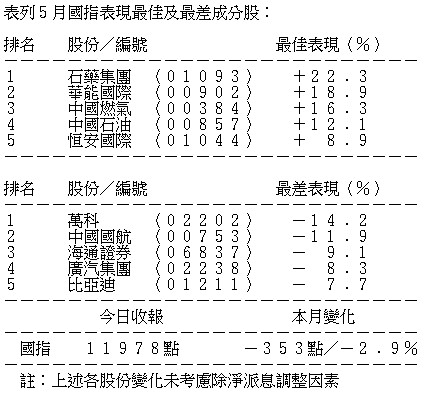表列5月國指表現最佳及最差成分股: