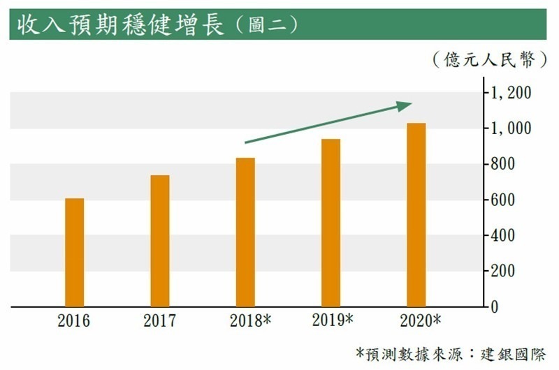 建銀報告指,持續的經濟增長,物流外包趨勢以及中國蓬勃發展的電子商務,將支第三方物流的強勁增長。預計今年至2020年,第三方物流市場規模將以15.2%的複合年增長率增長(見圖一)。作為內地最大的第三方物流企業,中外運借助這利好趨勢,結合內部整合,實現業務自然增長和市場份額增長。