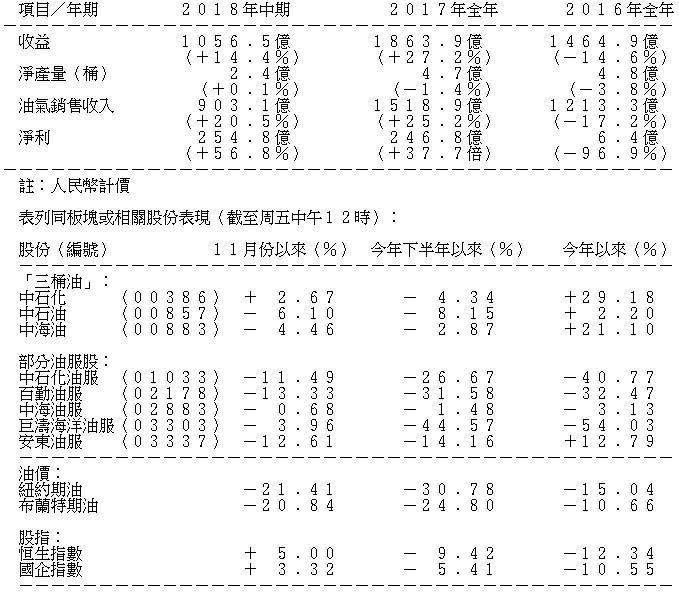 該公司2018年上半年實現油氣銷售收入903.1億元人民幣,比去年同期走高近21%;淨利潤達254.8億元人民幣,同比大增57%。此外,該公司截至9月底止首三季產量錄得3.52億桶油當量,該數量為全年目標4.8億桶油當量約七成,相信該公司能如願以償,完成其年度目標。