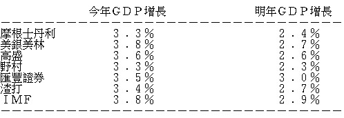 表列金融機構、IMF對今明年香港GDP增長預測: